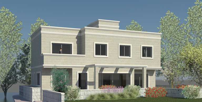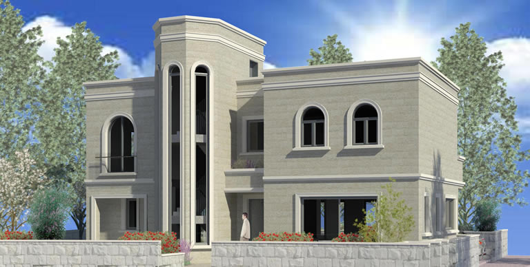 Rich stone detailing and a defined form gives this house its own charm. The hexagonal stairwell with large strip windows and arched heads floods the floors with light while the cornices and stone banding set an order to the elevations. The natural stone cladding used on this house was Birzet honed locally.