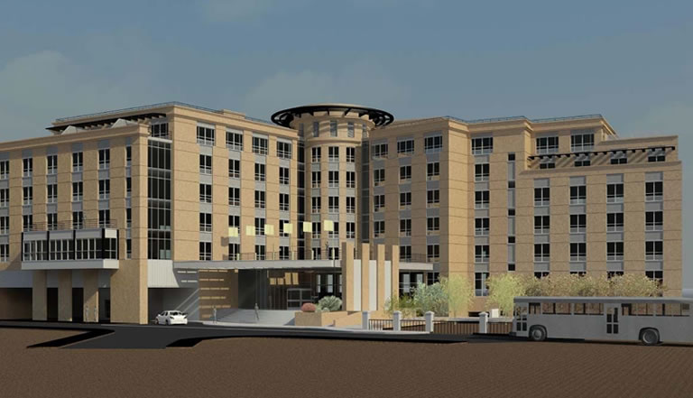 The design for this hotel development in Romania was undertaken while at Ben Dor Architects. A large plaza is created to the front of the project while the architectural language picks up the traditional materials and local features.